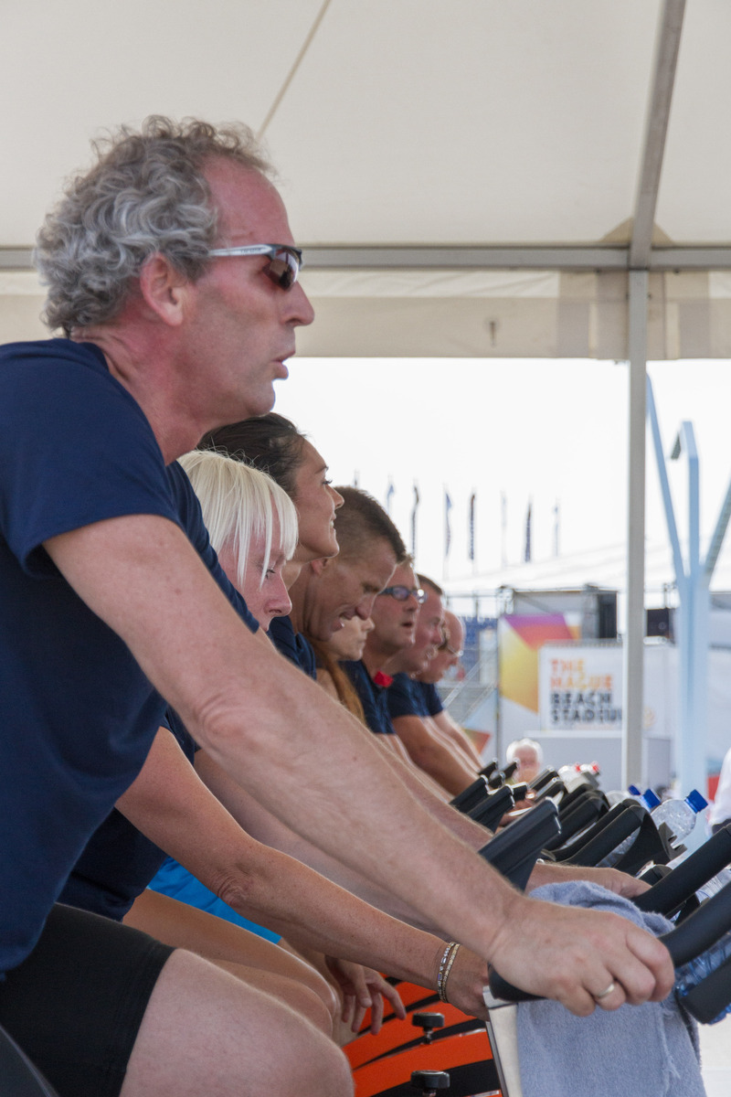 De lancering van onze nieuwe spinningfietsen van Body Bike op de boulevard voor het The Hague Beach Stadium!